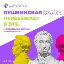 С 1 января банком-оператором программы «Пушкинская карта» станет ВТБ. Чтобы сохранить доступ к программе - подай заявление на перевыпуск виртуальной карты в ВТБ до 28 декабря.